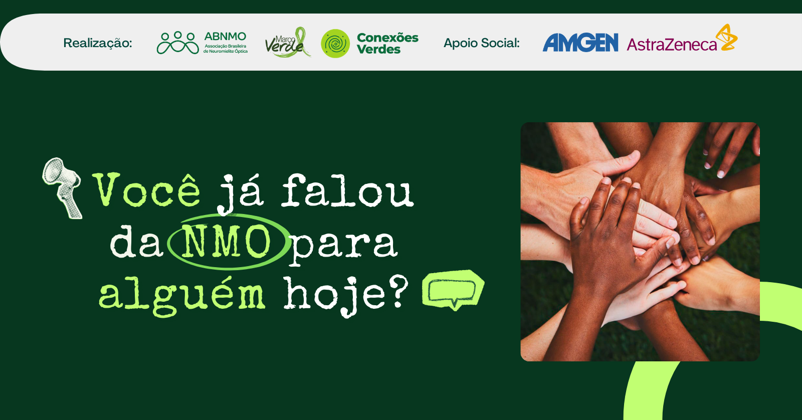 Porque a nossa campanha deste ano foca no poder da rede de apoio e da mobilização social. O projeto Conexões Verdes, iniciado em 2023, evoluiu para uma provocação necessária: “Já falou da NMO para alguém hoje?”.